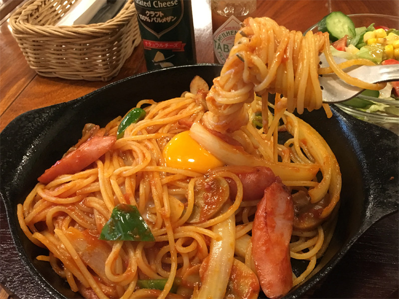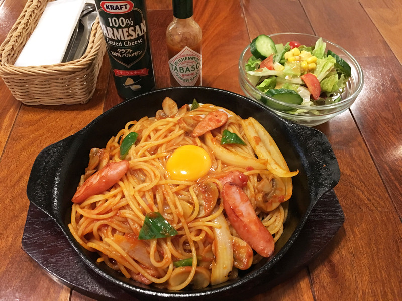 ナポリタン(ミニサラダ付)850円+生卵トッピング70円。