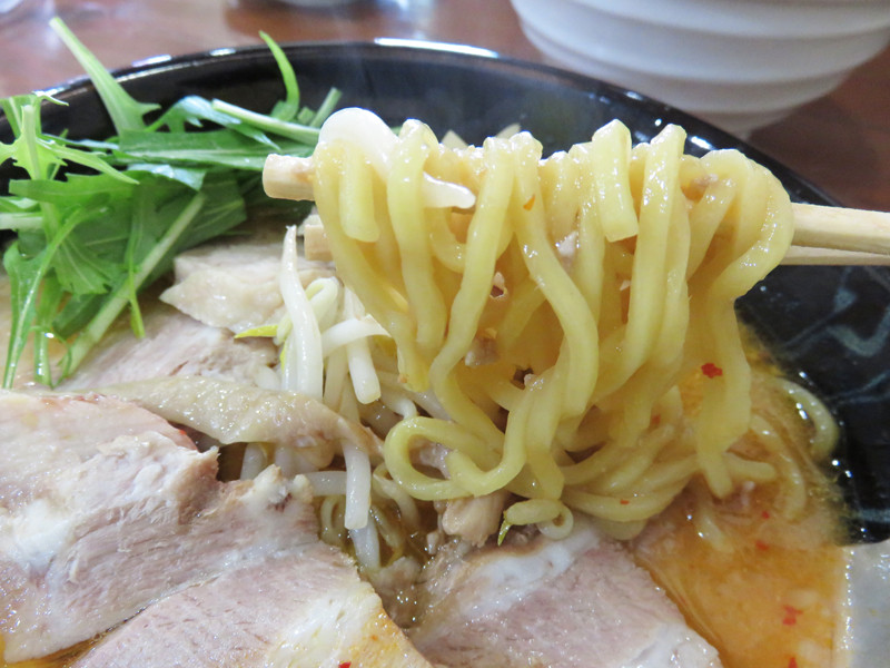 麺も塩ラーメンと違い、中太のむっちりタイプ。