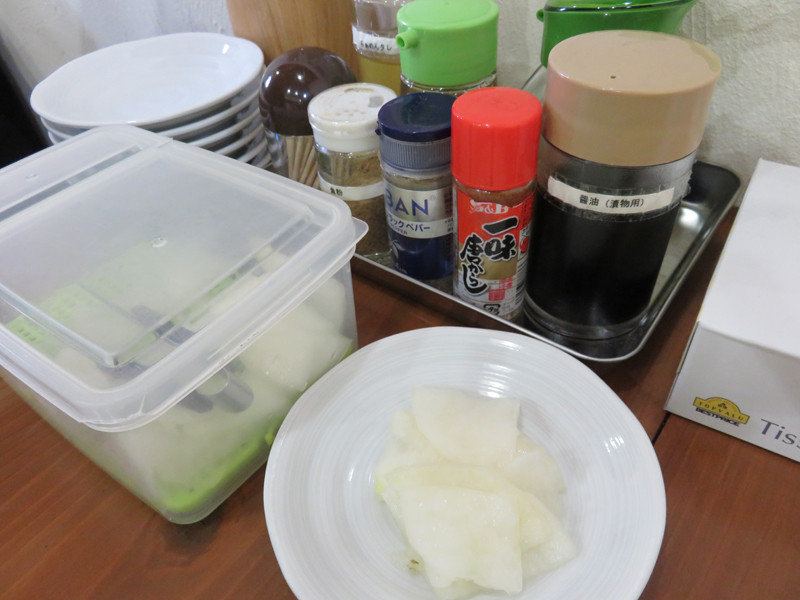 大根のお漬物もあったので、注文の品が来るまでポリポリ頂きました。