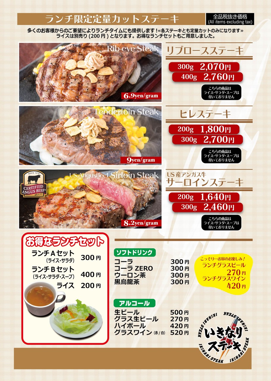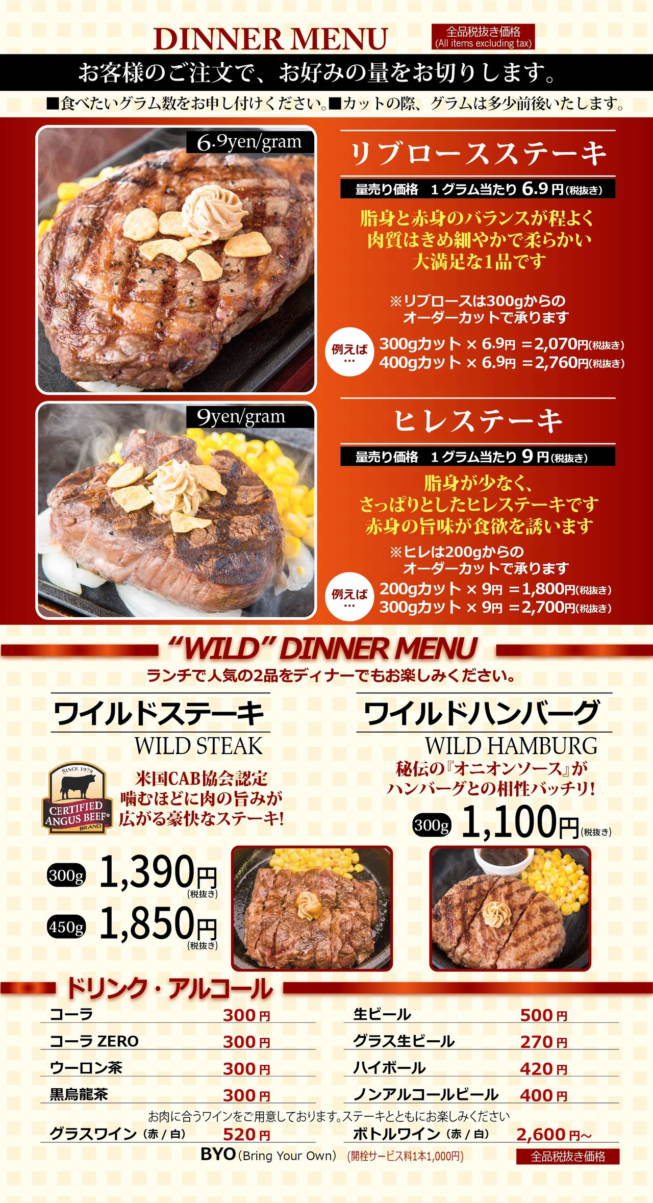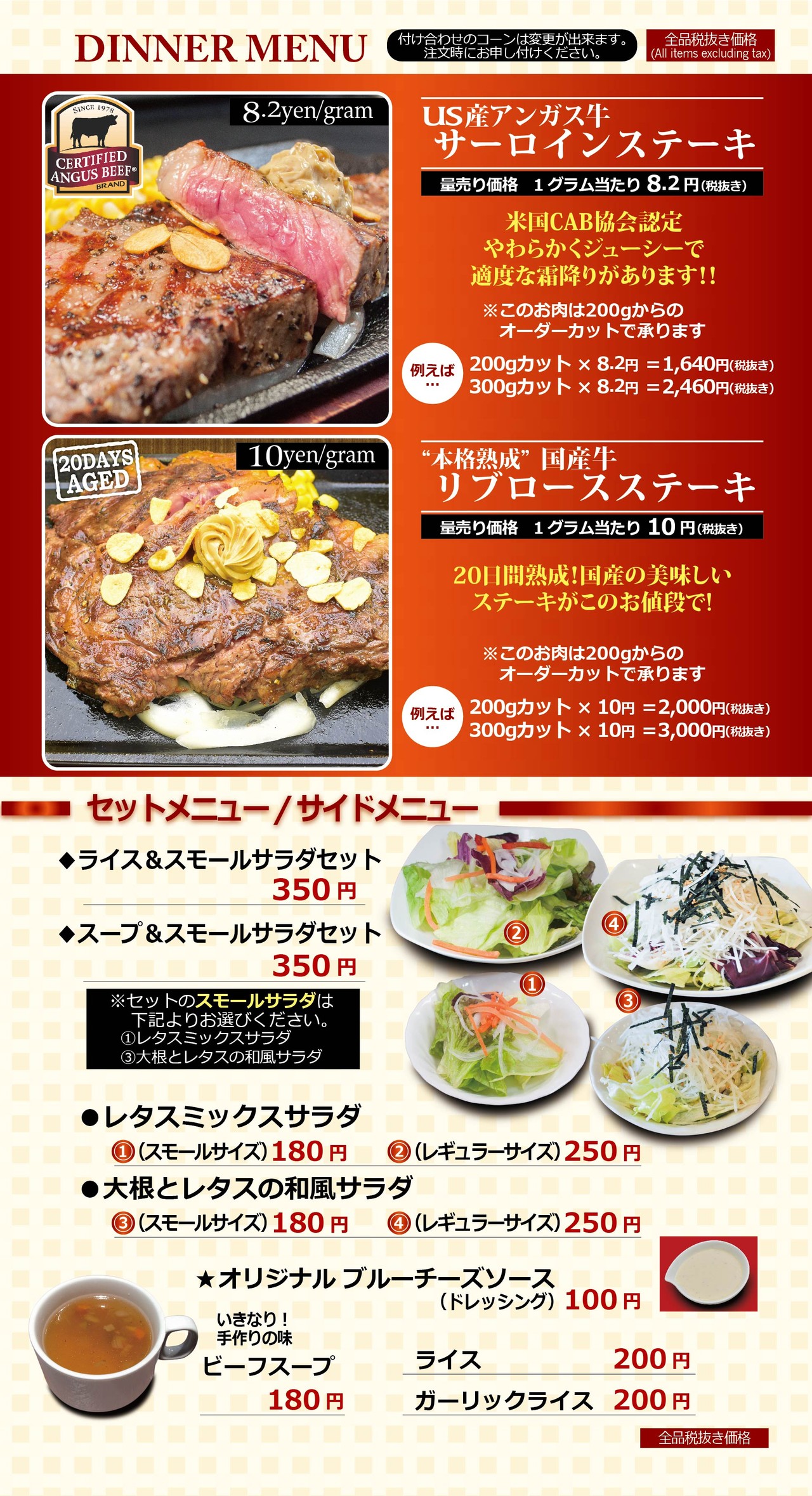 平日夜と土日は、自分が食べたいステーキの種類と量を選び、オーダーカットしてもらうシステムになっています。