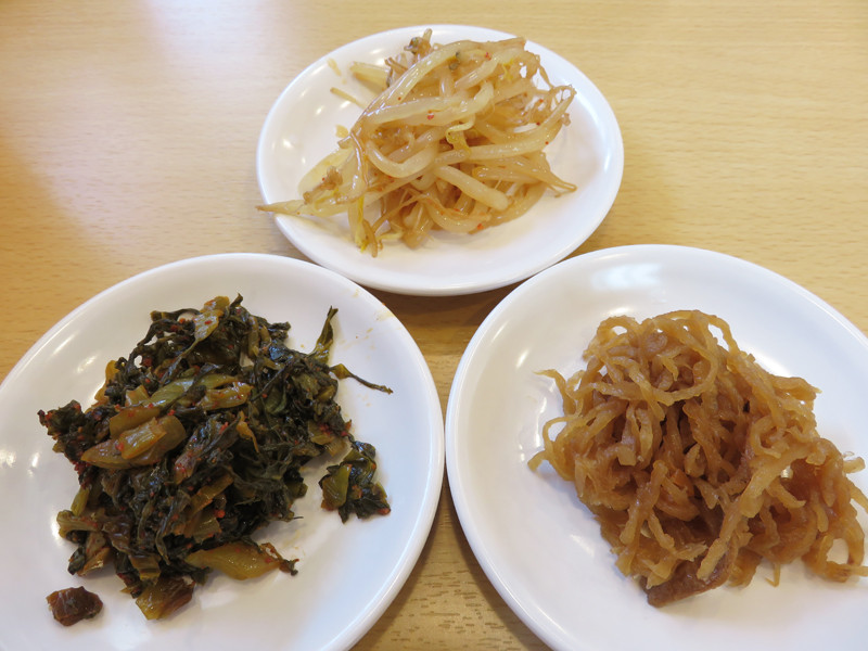 お店のコーナーに取り放題の辛子高菜・切干大根・味付きモヤシがありました。