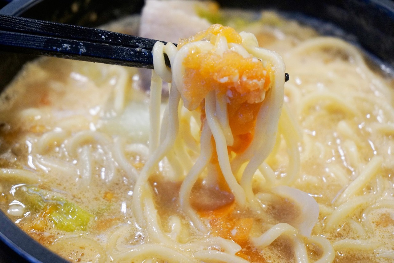 ちゃんぽん麺だけに煮込みに堪えうるもっちり食感です。