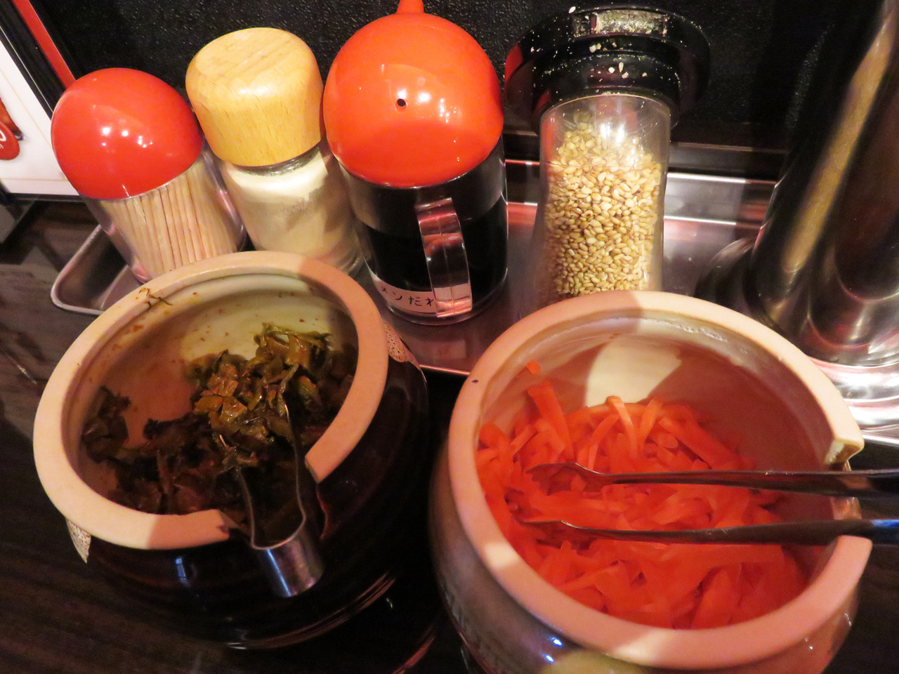 『博多家系豚骨』を謳うだけに、卓上には紅ショウガと辛子高菜があります。