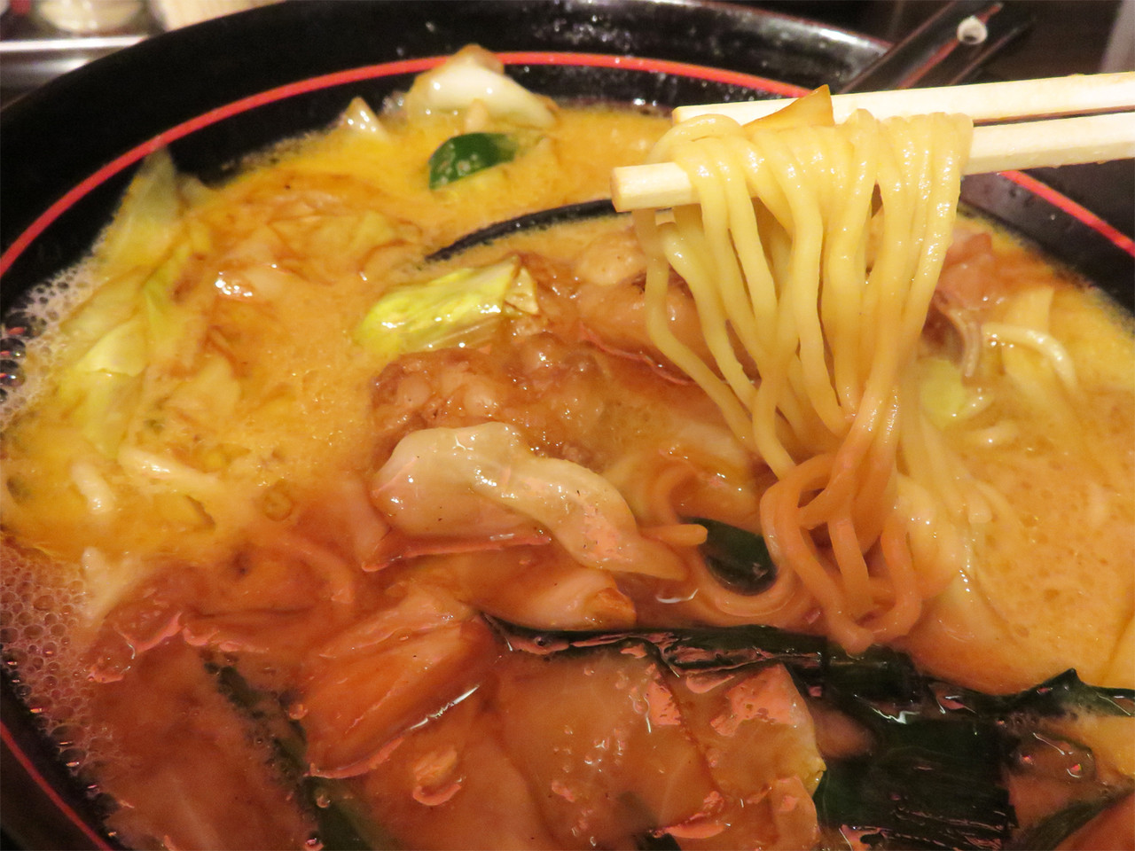 スープの味は、バランス良くもかなり味が濃いめですね。