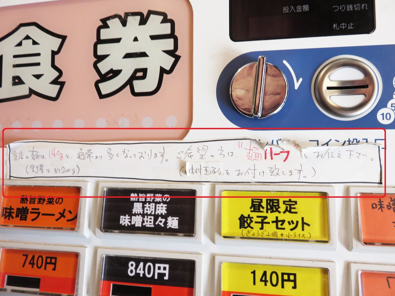 麺はデフォルトで多め設定なので、同料金でハーフ・味玉付に出来るそうです。