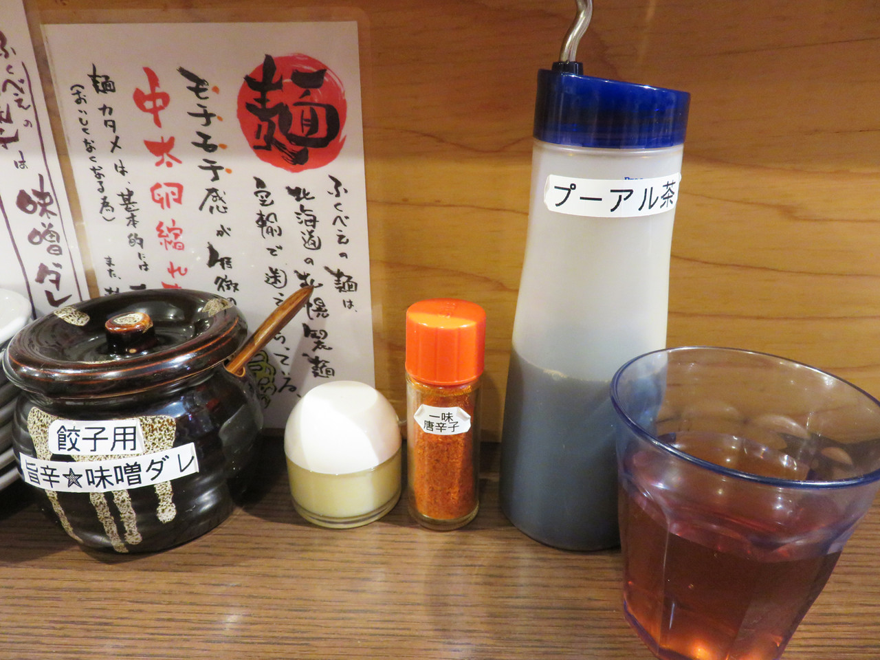 卓上には、焼き餃子用の味噌ダレがあります。