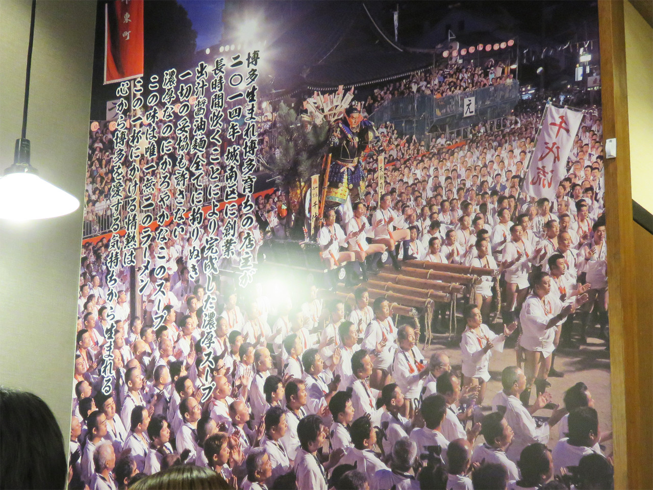 店内には博多祇園山笠の大きな壁紙。