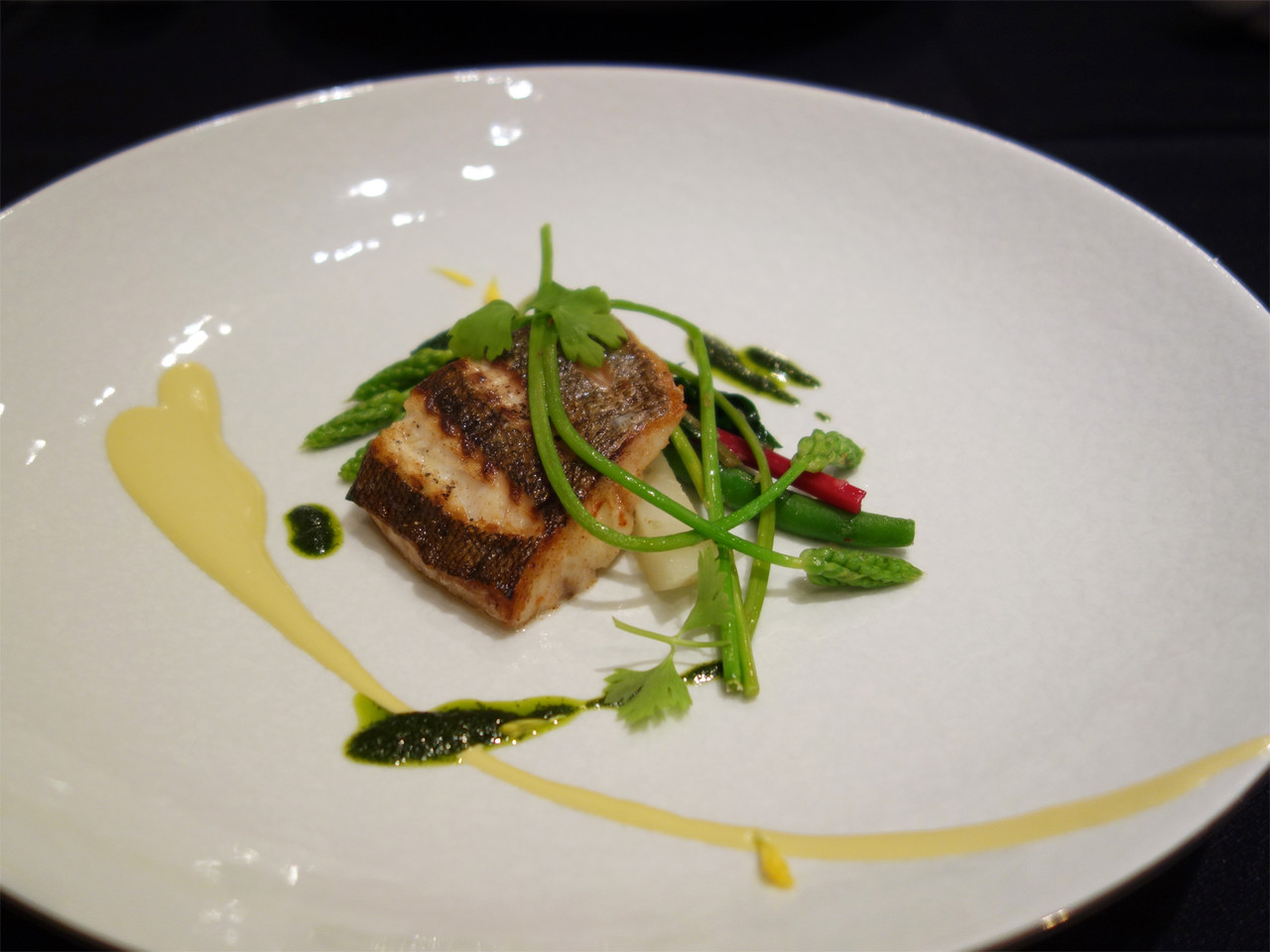 イサキのポワレ オリーブオイル仕上げ マスタードソース