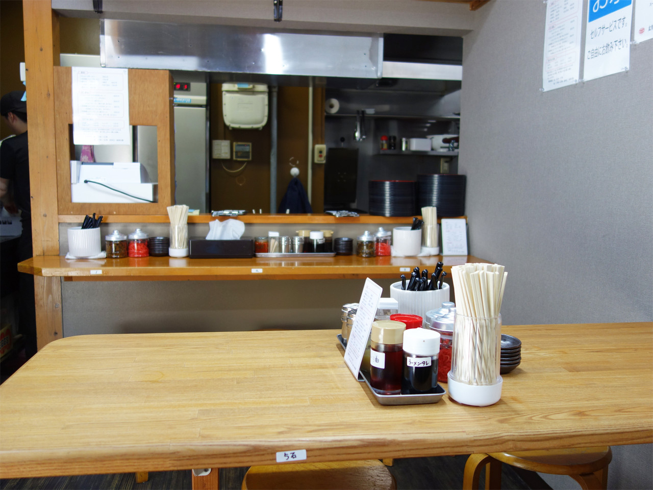 カウンター席と相席用のテーブル席。