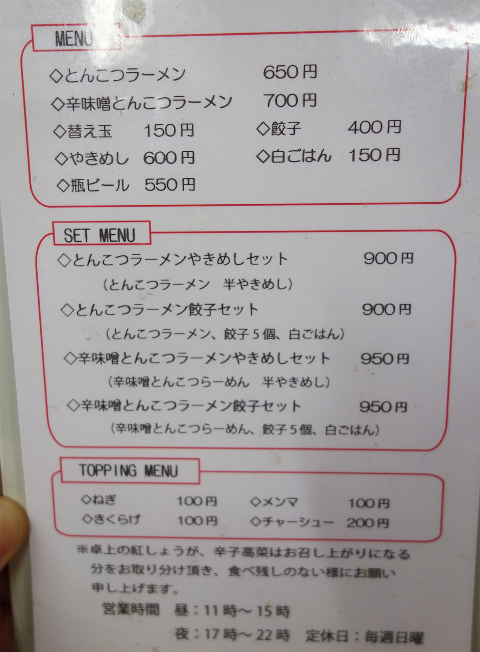 基本の豚骨ラーメンは650円です。替玉は150円。