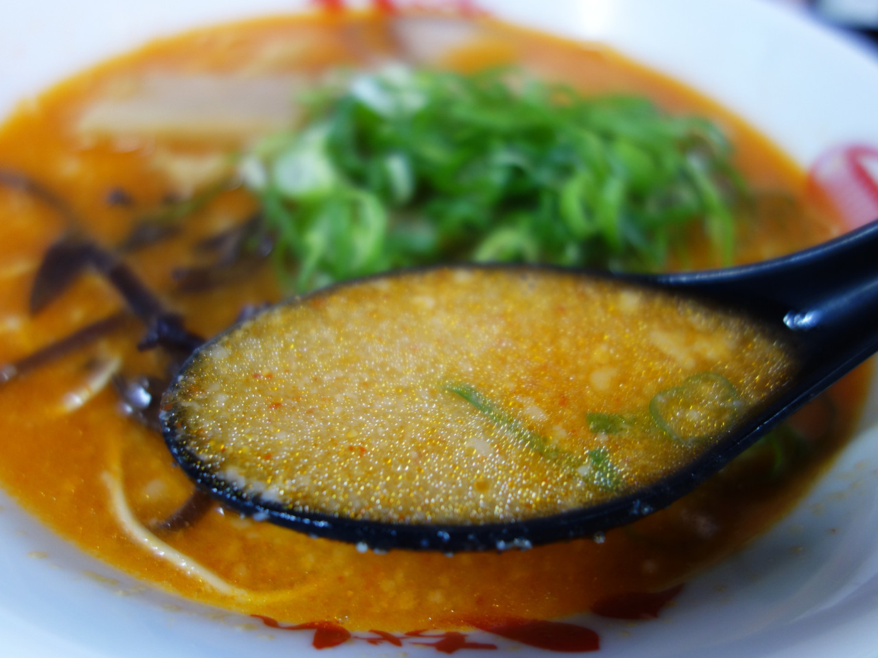 こってり豚骨に辛味噌が加わったので、味が一層濃くなりました。