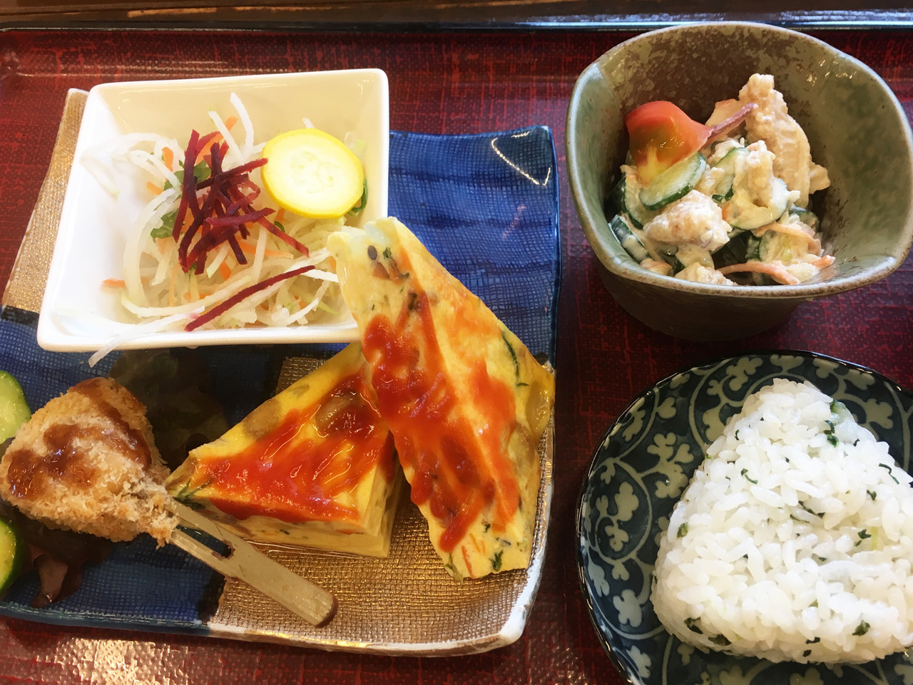 キッシュと車麩カツの盛り合わせ。