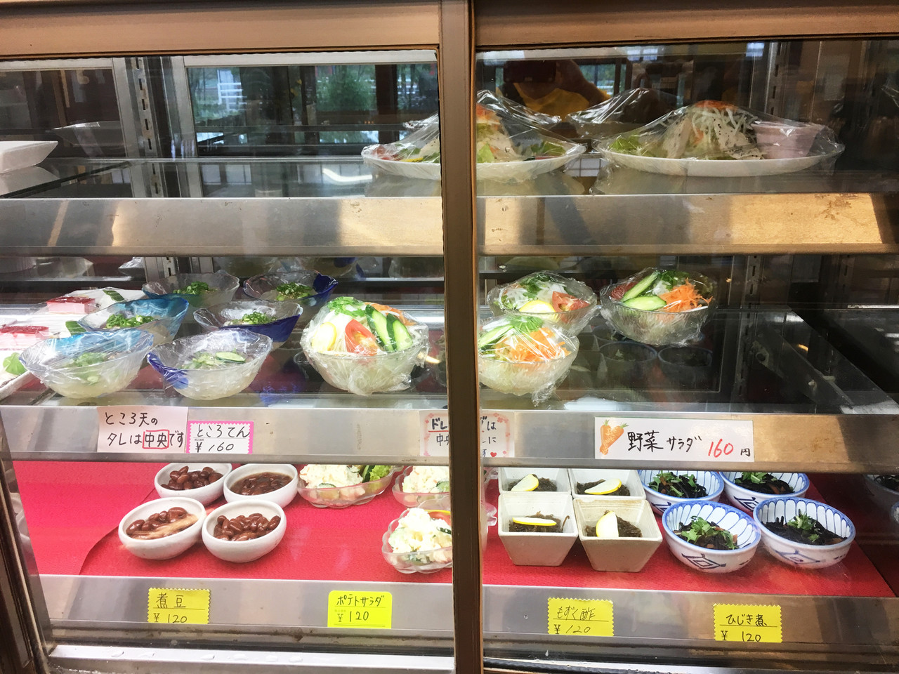 サラダや小さなおかずは160円、酢の物などの小鉢類は120円です。