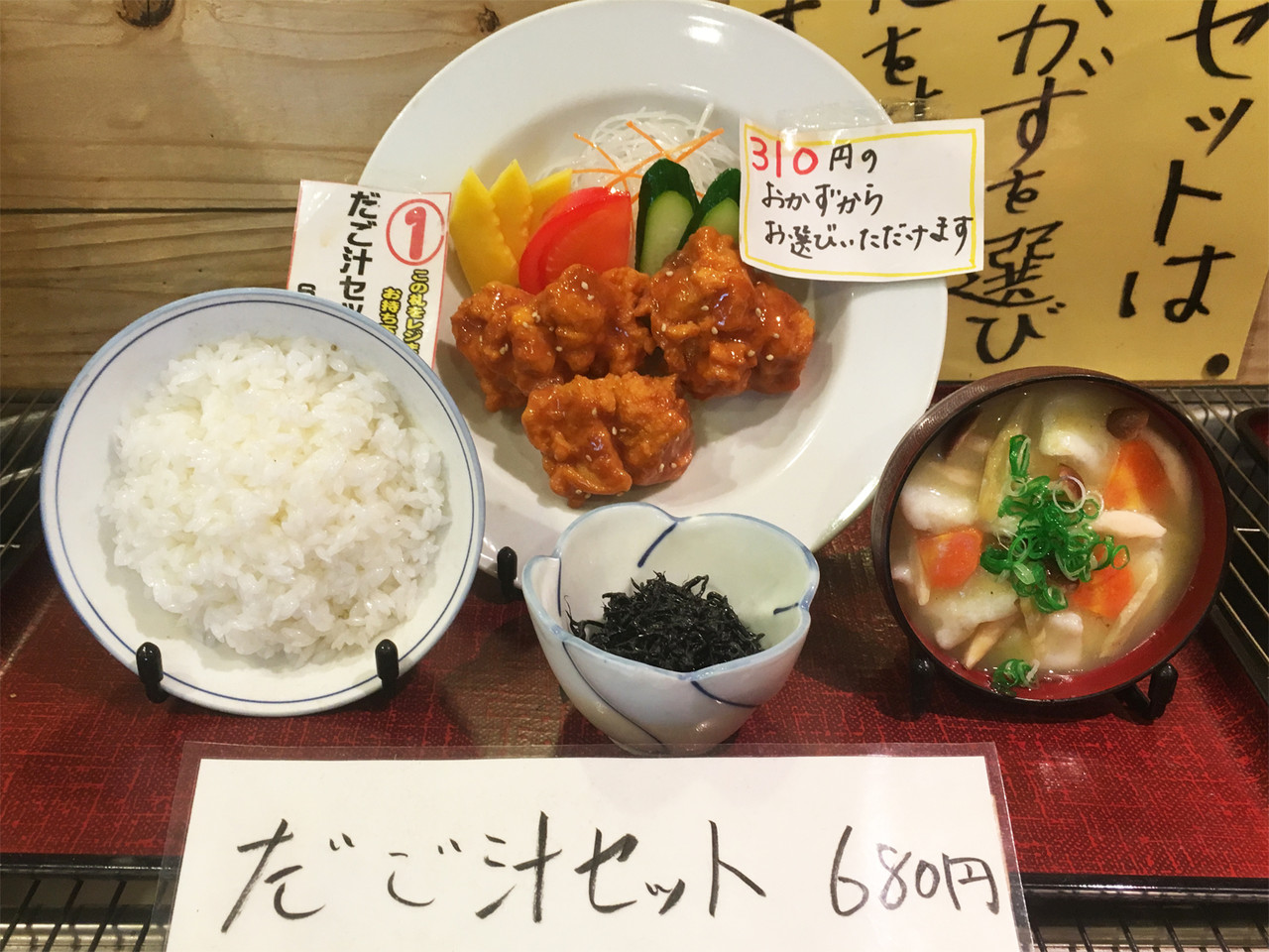 ご飯と副菜が付くセットは680円です。