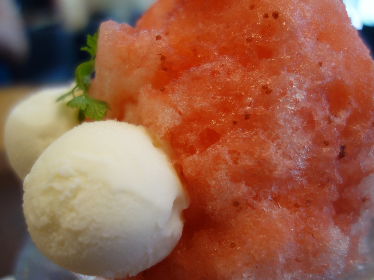 いちごのかき氷は、口の中が全て真っ赤になりそうな昭和なイメージでしたが、