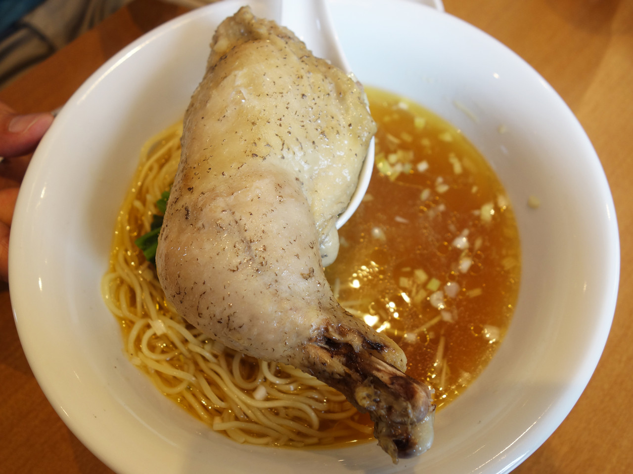 あっさりと柔らかく煮こまれた鶏もも1本が丸っと入っとります。