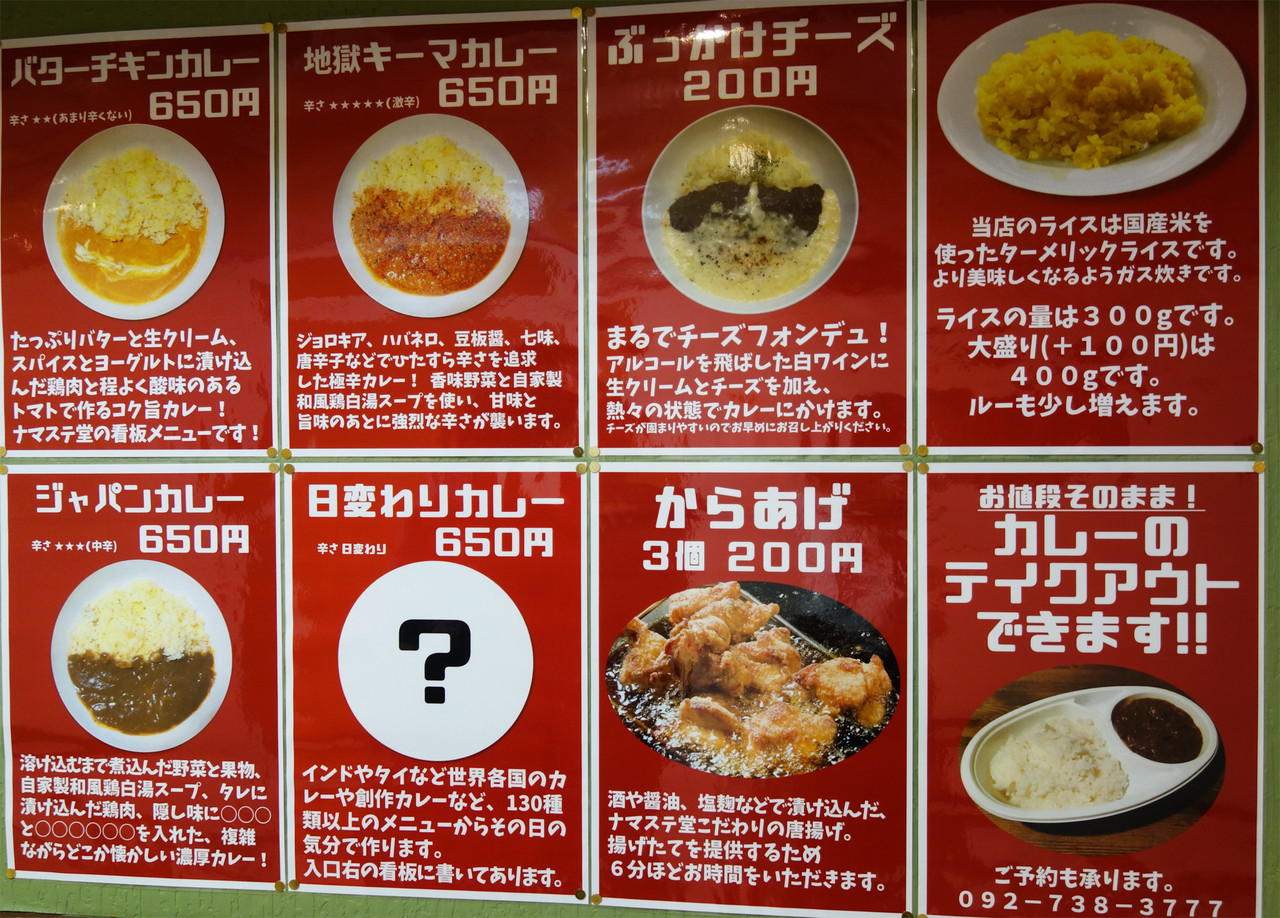 ナマステ堂 カレーワールド (カレーライス / 渡辺通駅、薬院駅、天神南駅)