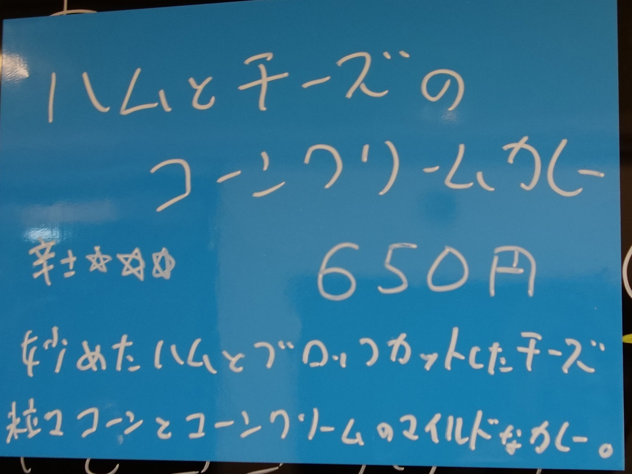 この日は『ハムとチーズのコーンクリームカレー』★★★(中辛)でした。