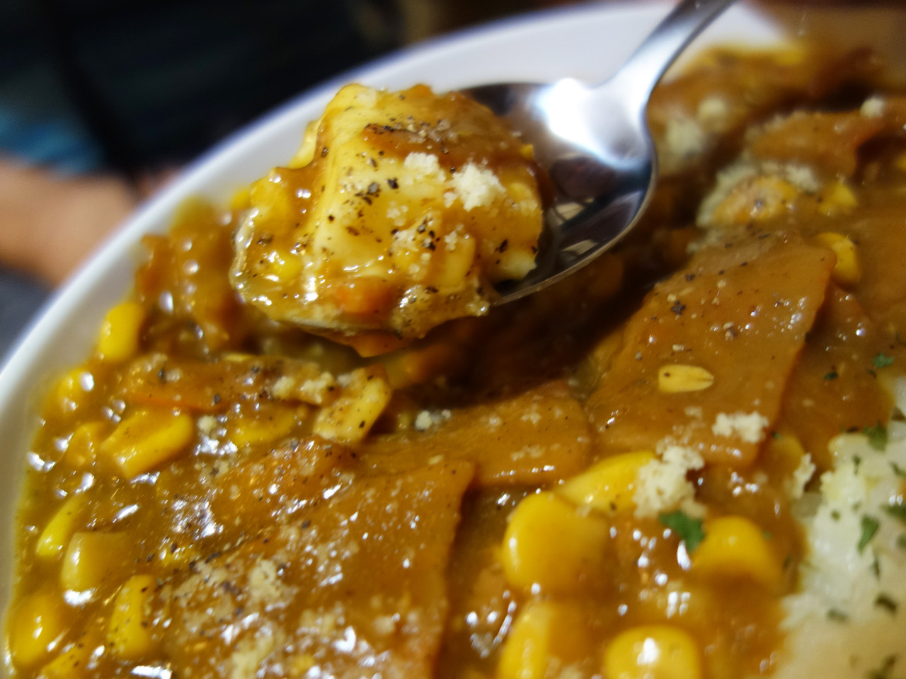 コーンやスライスハム、プロセスチーズが入ったカレーって新鮮!