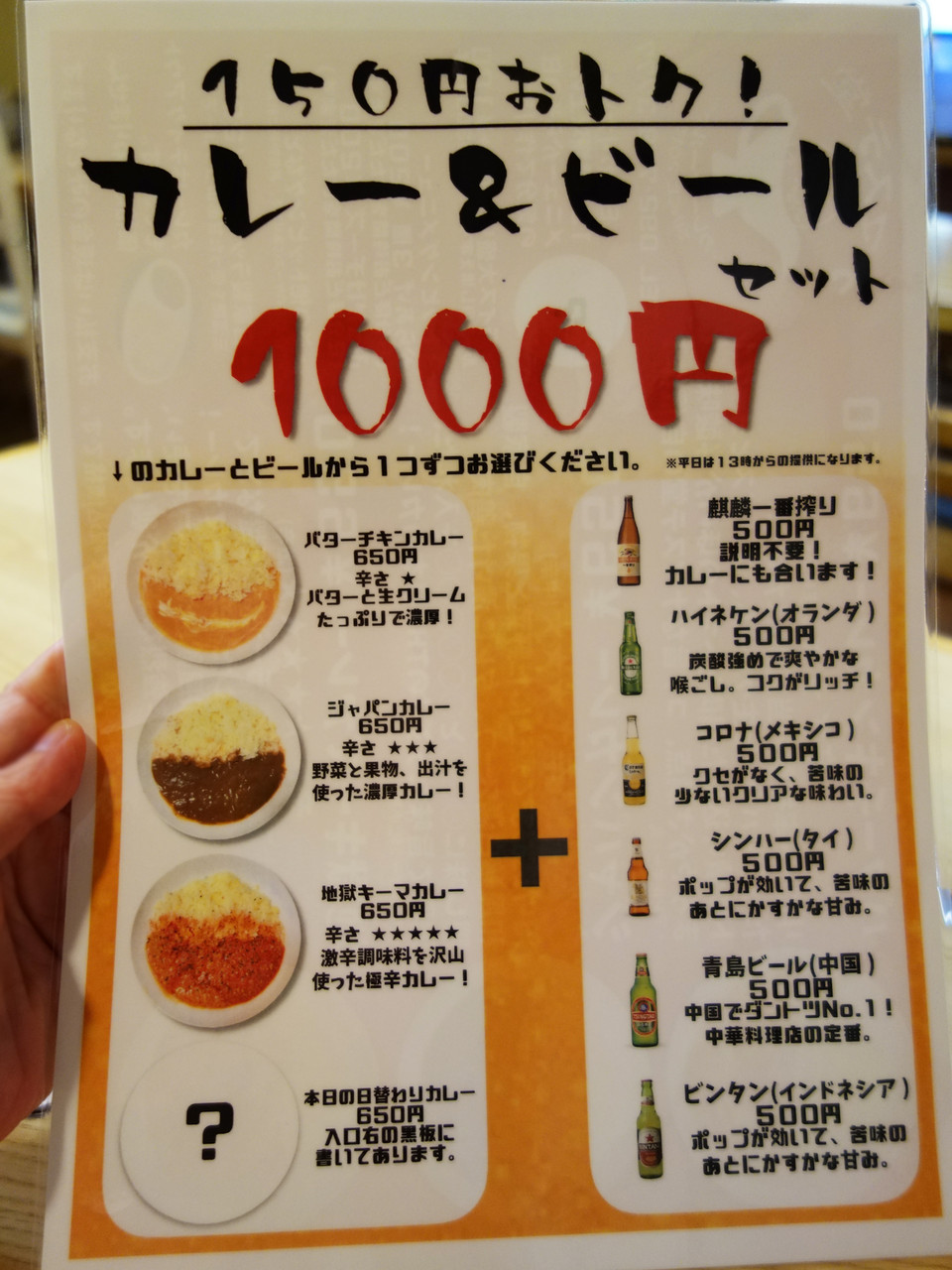 カレーは各種650円均一です。会社員の日常ランチにはまずまず嬉しい価格。