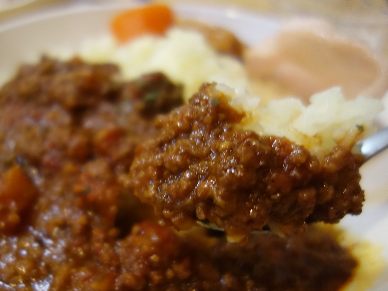 ひき肉はスパイスカレー店にありがちな粗挽キーマではなく、