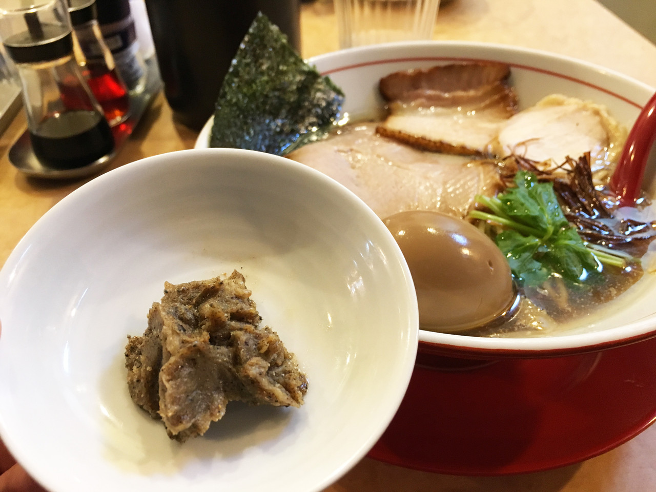 こちらは、トリニボに味玉100円をプラスしたもの。