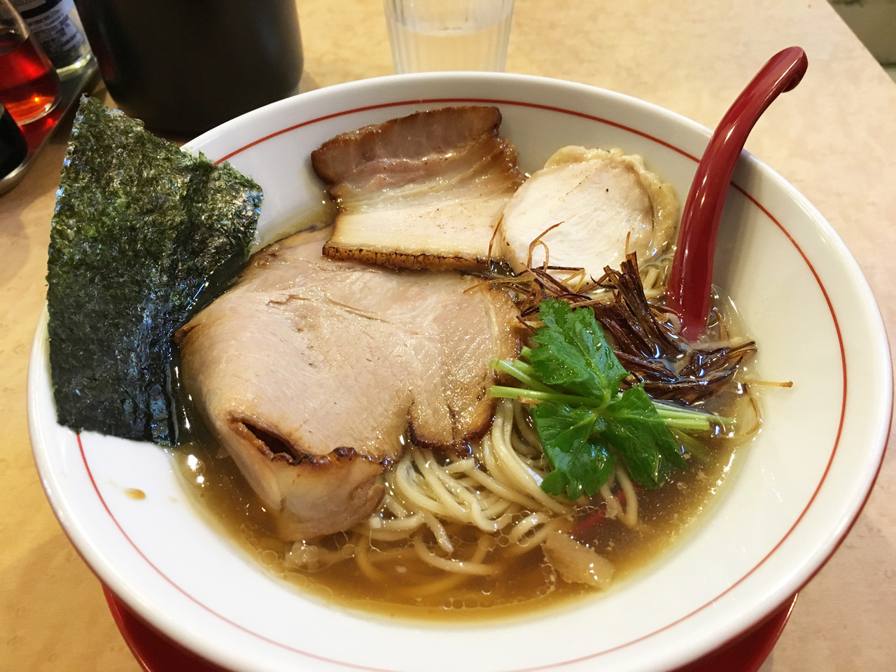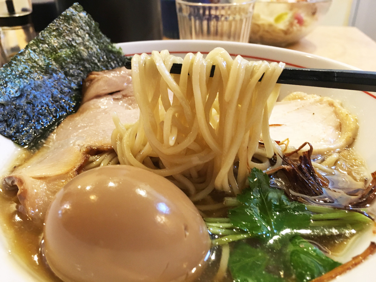あまり動物系や魚介系の味は強くなく、スッキリしています。