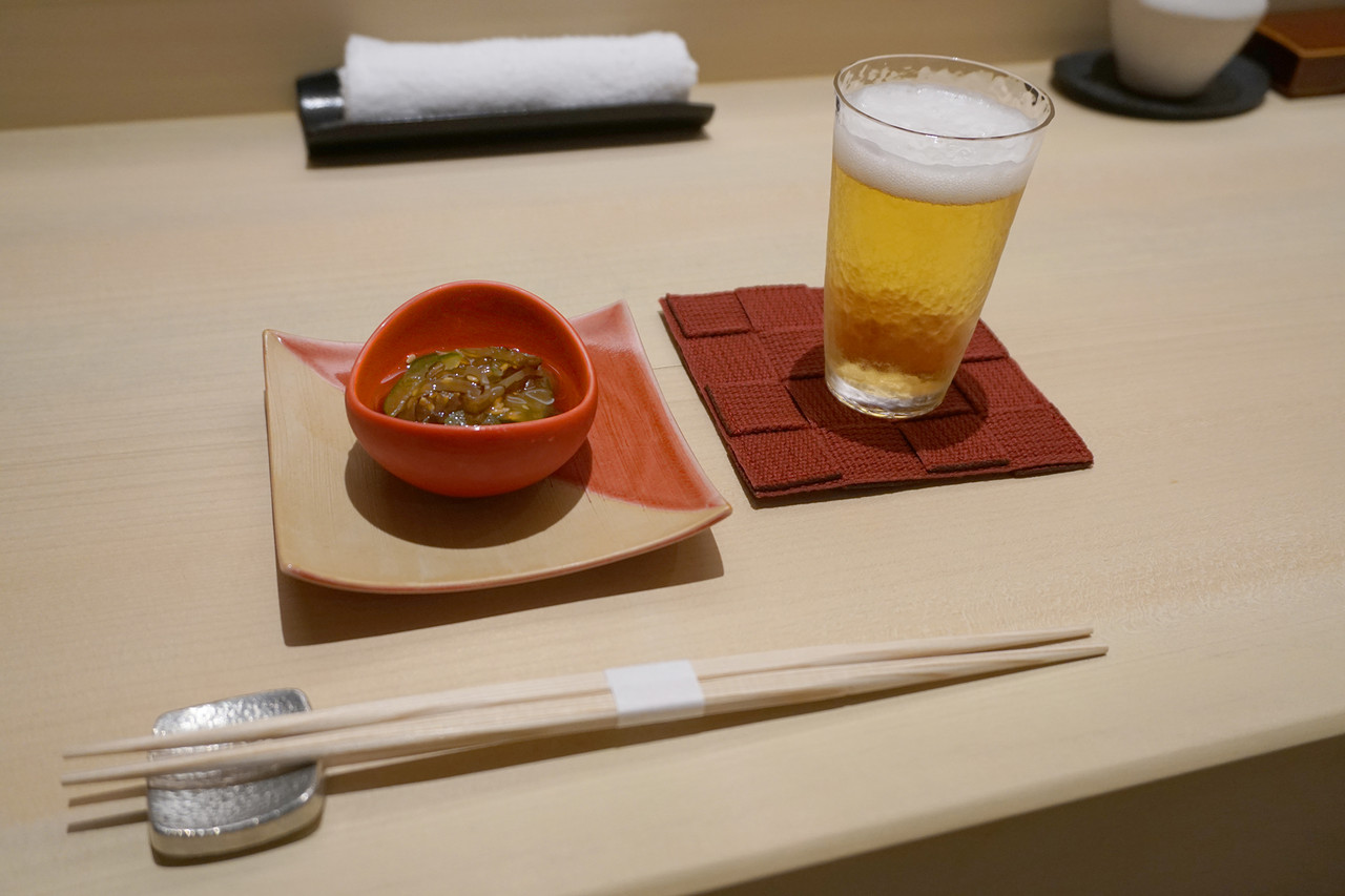 ちなみに、カウンター席の場合はお鮨は一貫ずつ出て参りますが、
