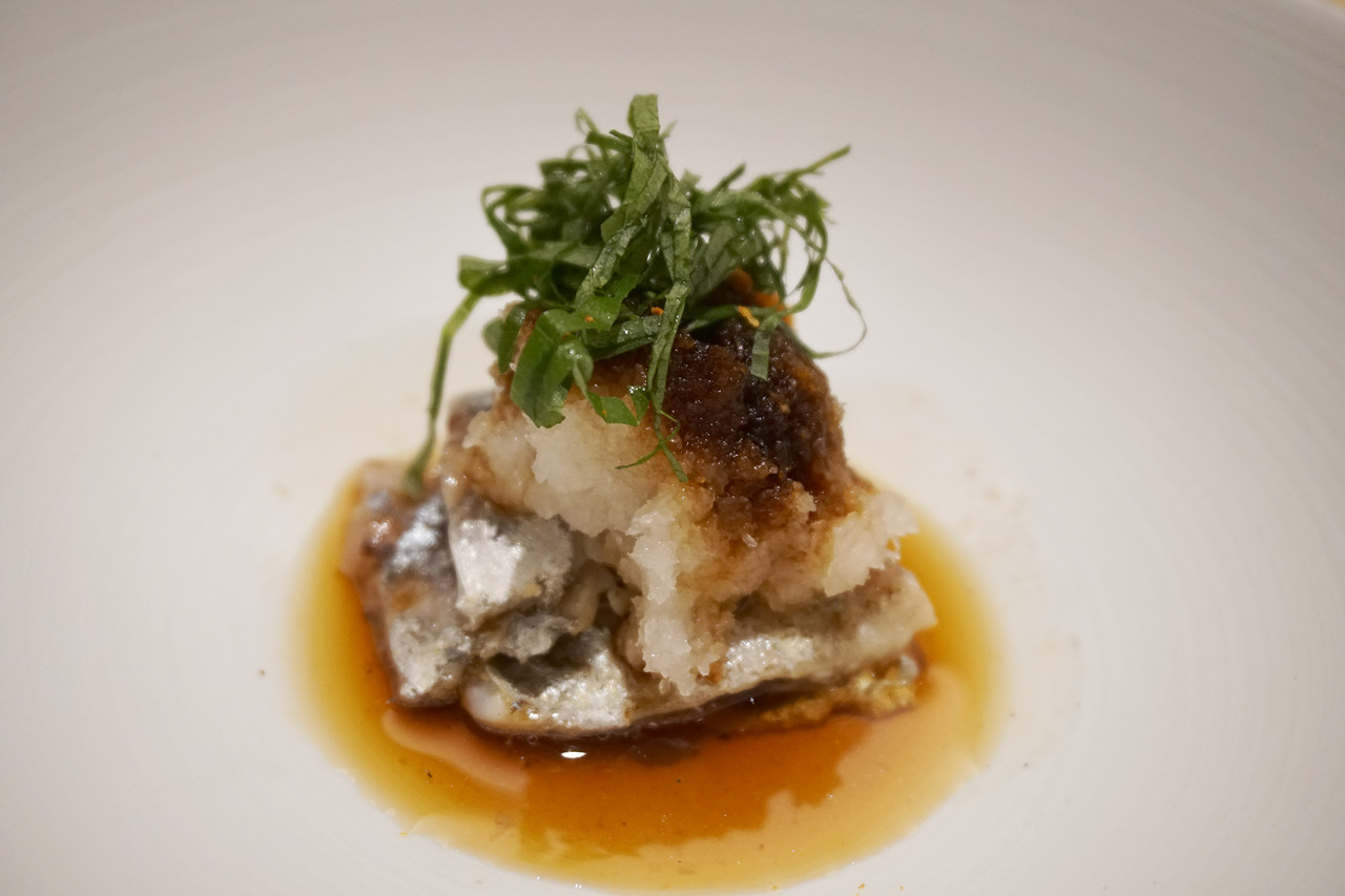 涼し気な錫の酒器で頂いたのは、筑後の銘酒『繁枡』。