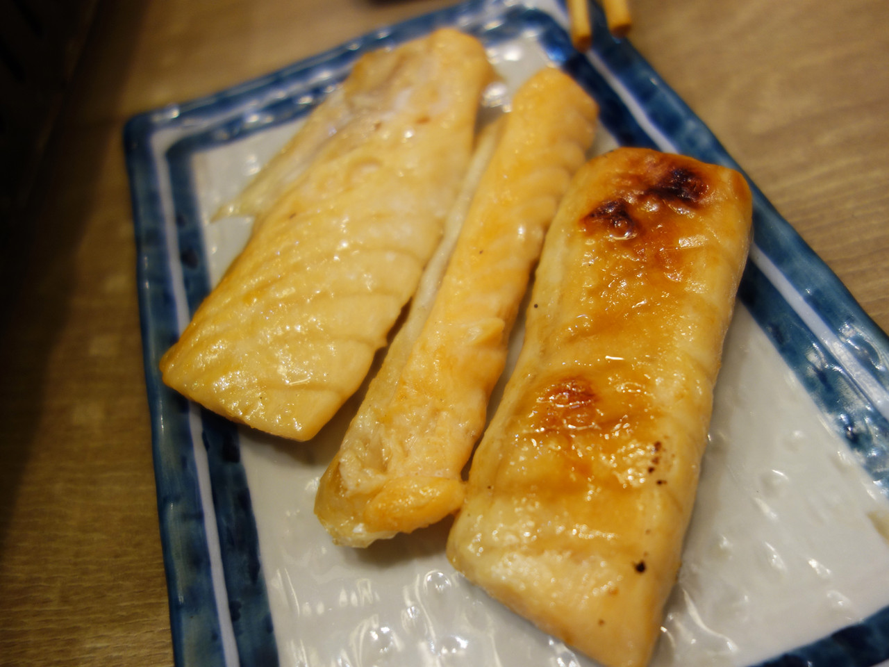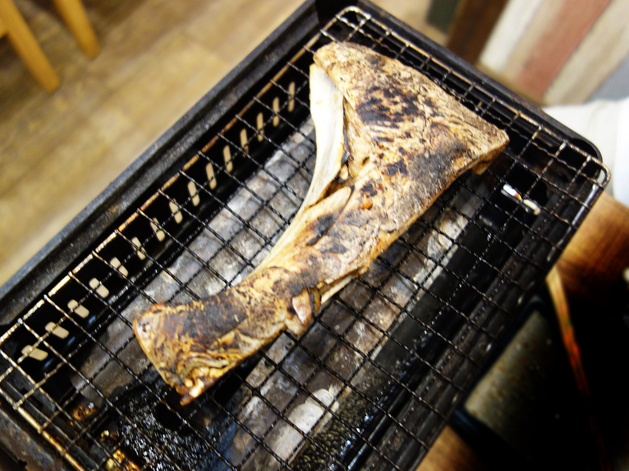 冷めてしまったサーモンハラスも網の上で焼き直します。