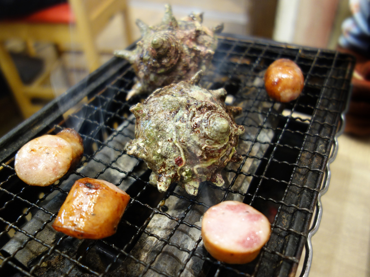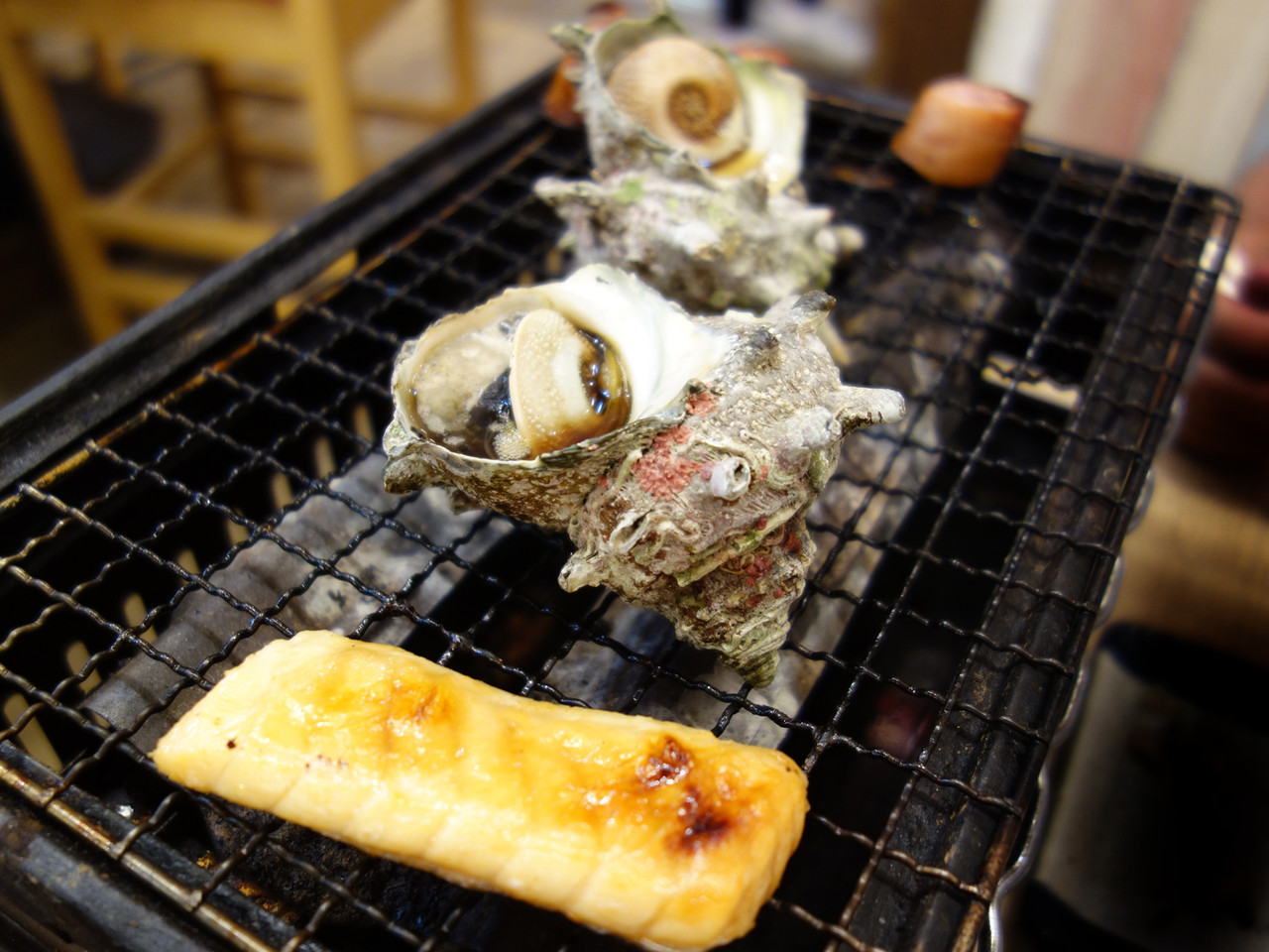 活サザエの壺焼き499円(1個)。