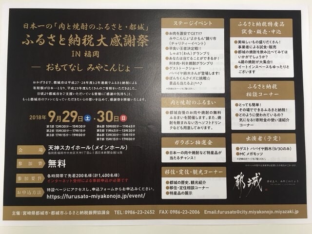 肉と焼酎の里!みやこのじょう♪@都城市ふるさと納税 福岡感謝祭