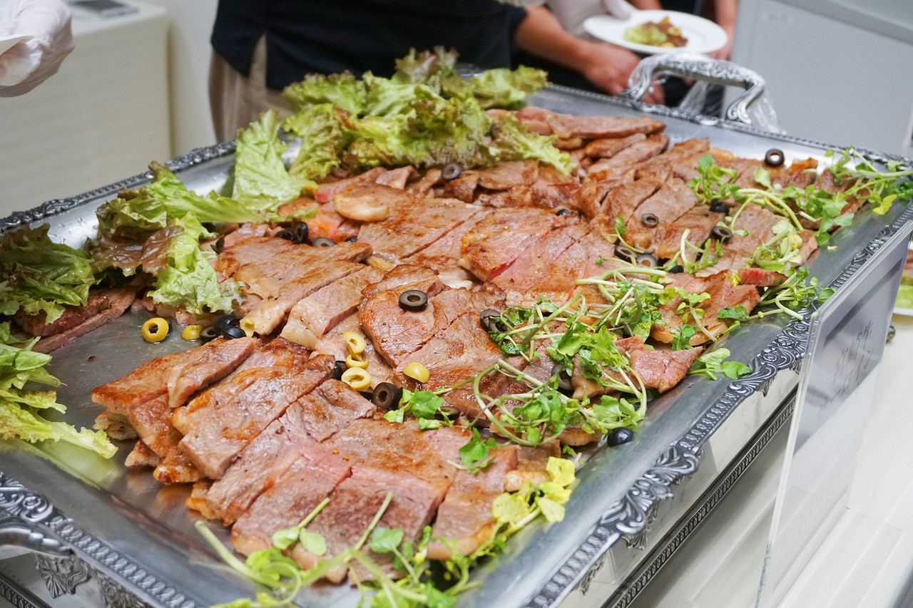 試食サイズではないステーキ・お酒・スイーツなど大盤振る舞い、