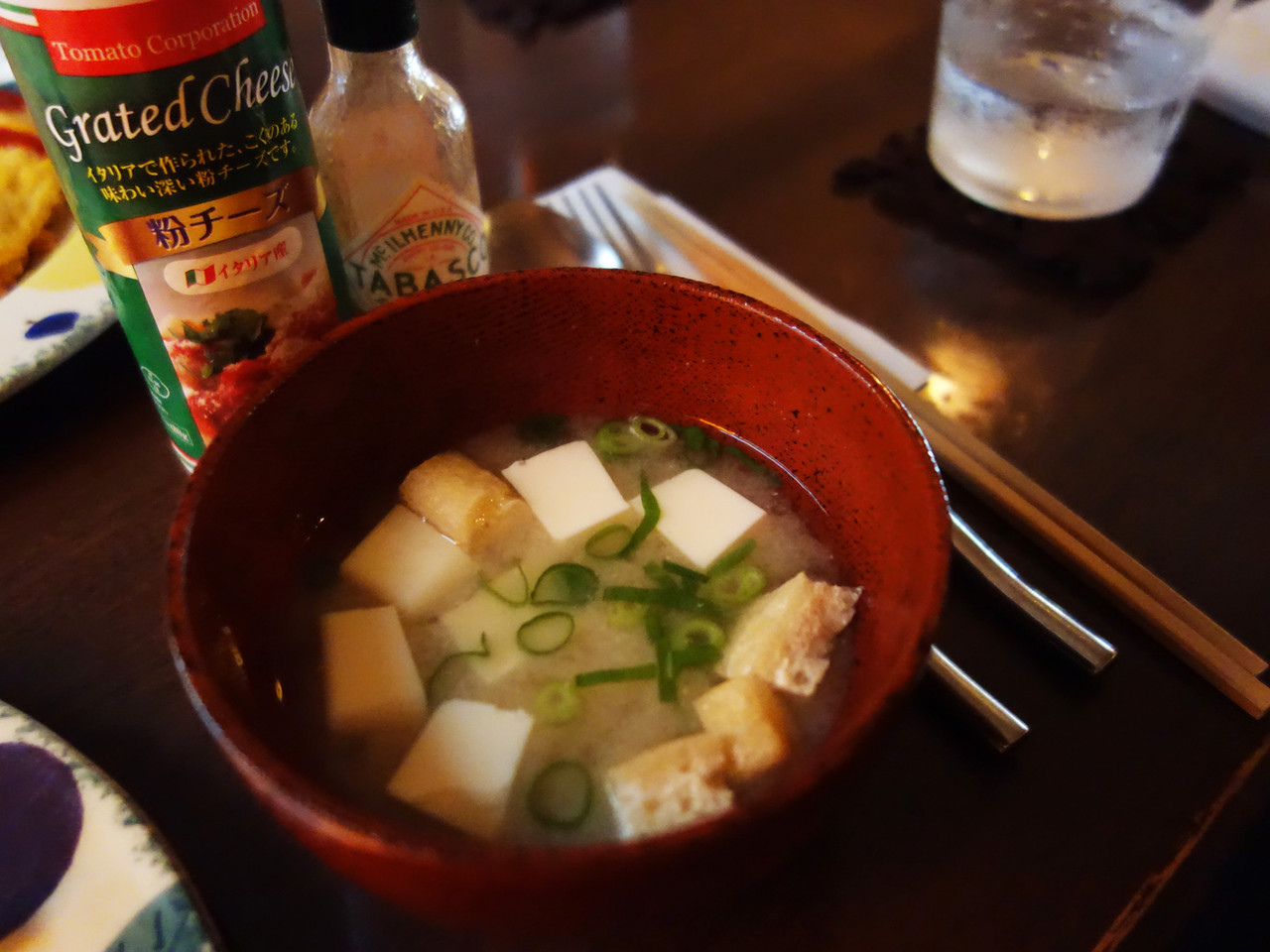 同僚と2人で、ナポリタンとオムライスを頼んだら、お味噌汁まで付いていました。