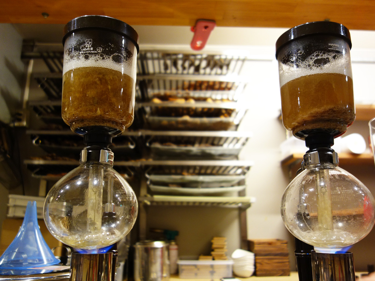 同僚がカウンター席上のサイフォンを眺めながら食べたいと勝手を言うので、