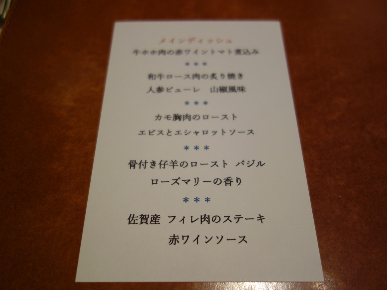 コースのメインディッシュは、5種類から選ぶことが出来ます。