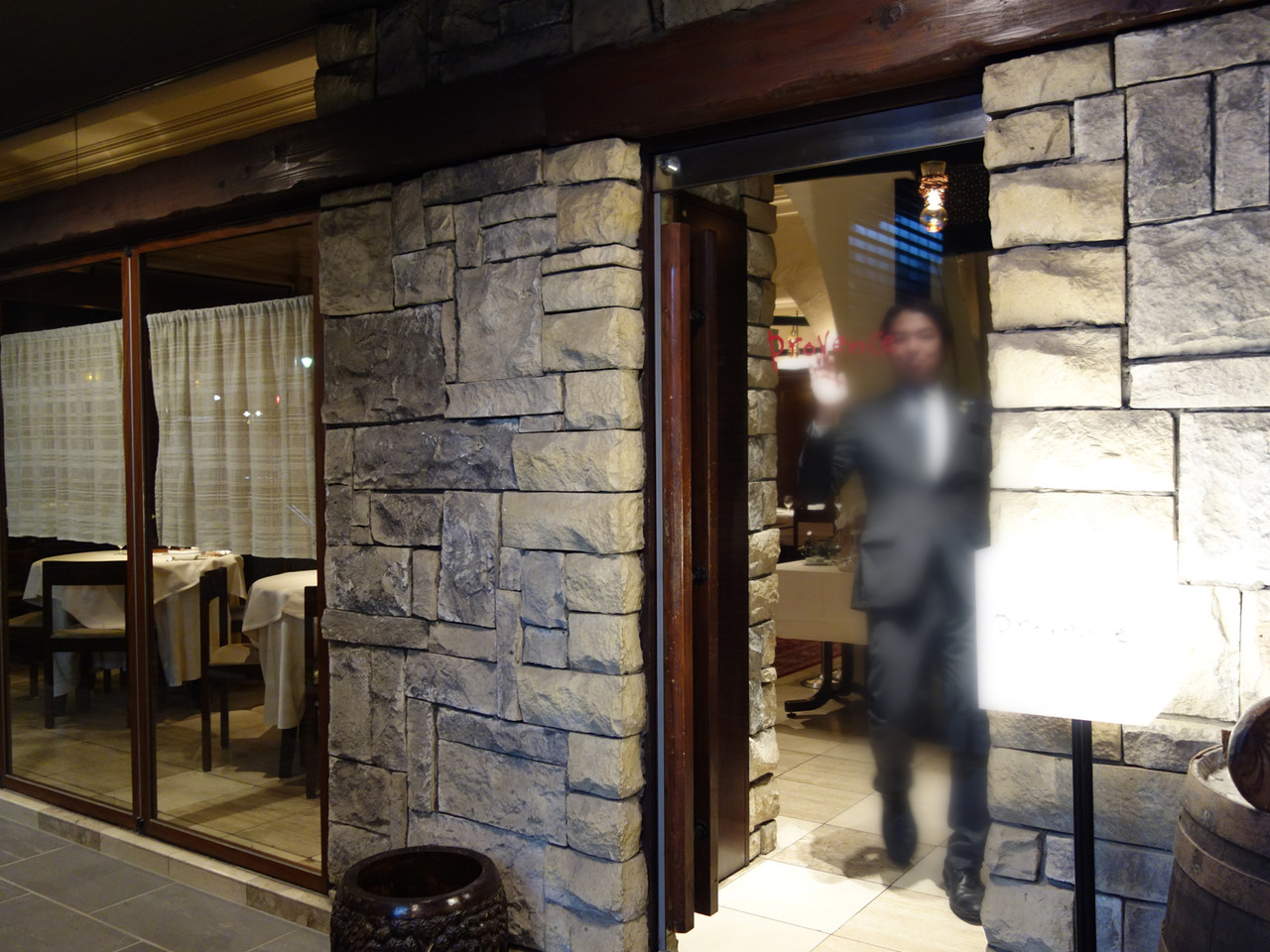 外観を撮っていたら、お出迎え1秒前のシニアソムリエ牧田氏が映り込んでしまいました(笑)。