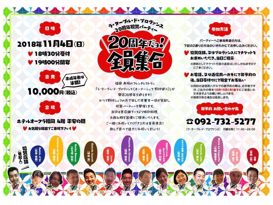 食後に、オーナーシェフの野村氏よりご案内頂いた『20周年記念パーティー』。