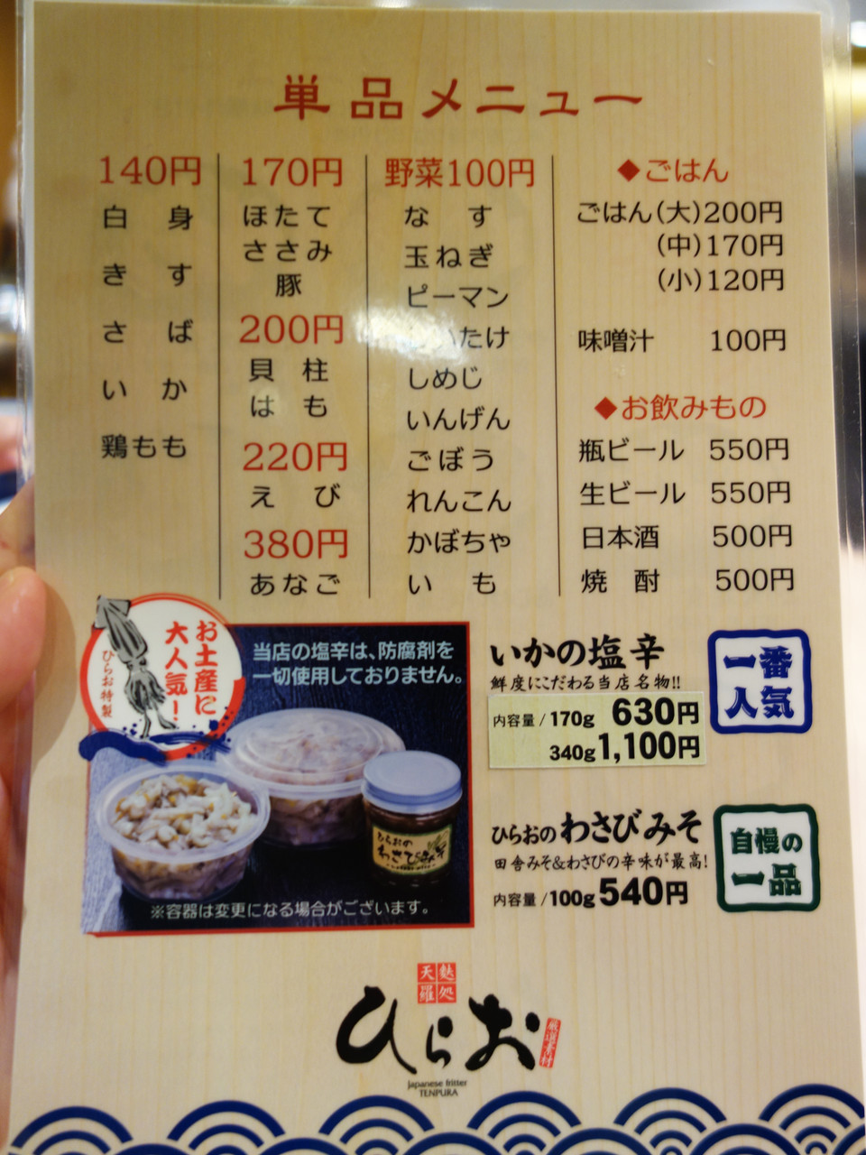 イカの塩辛が名物ではありますが、天ぷらは二の次ということではありません。