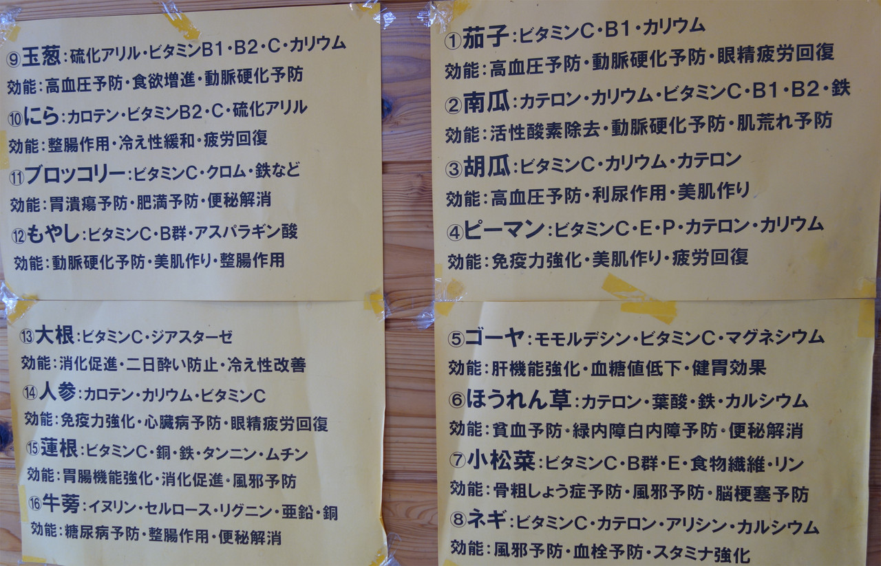 店内の壁面には「肉・野菜・魚をバランス良く食べましょう」みたいな文言や、