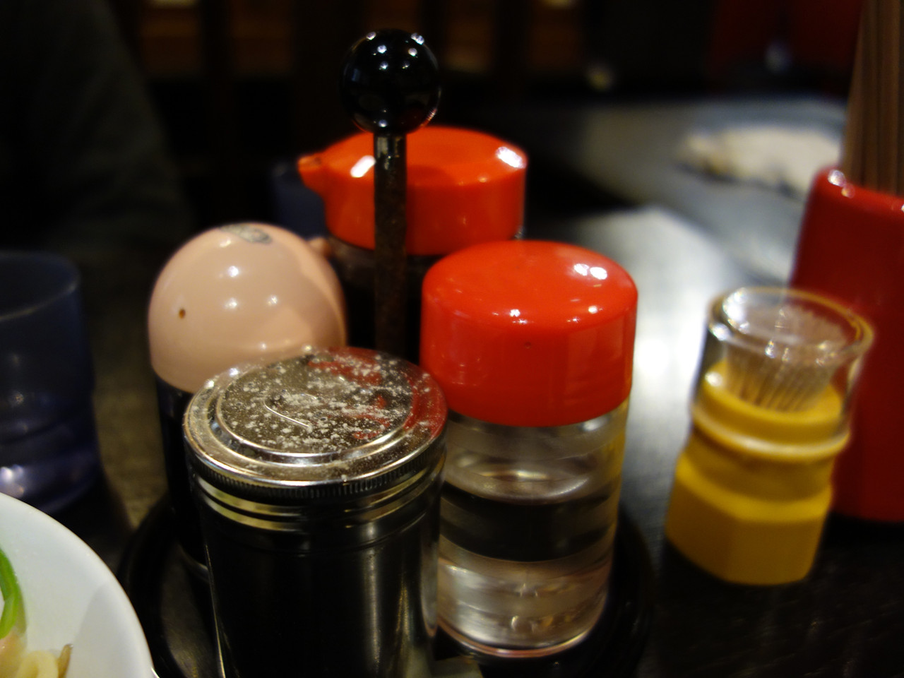 卓上には、ウスターソース・醤油・酢・コショウがあります。