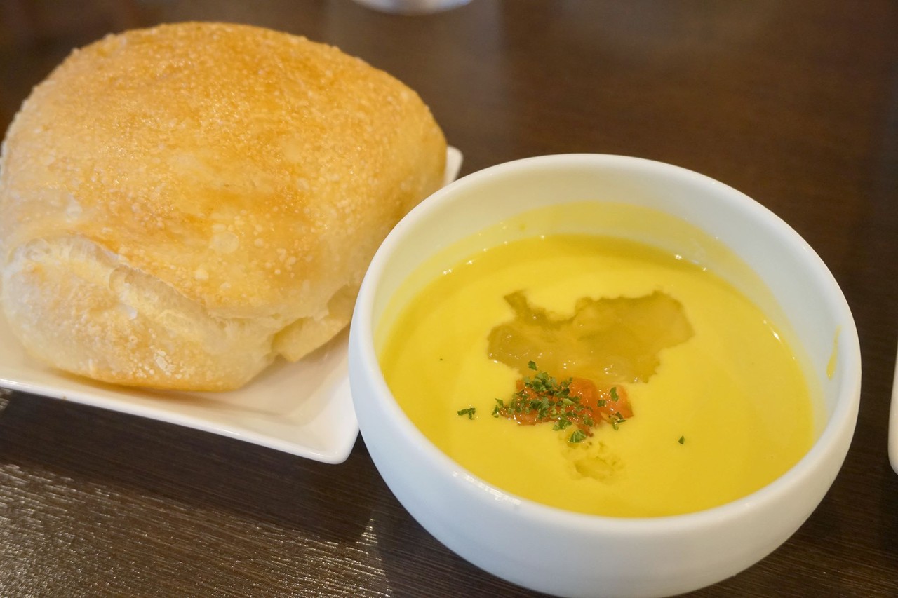 南瓜のスープと、そうりの食卓の大定番ブレッド『バターリュスティック』の組み合わせもいいです。
