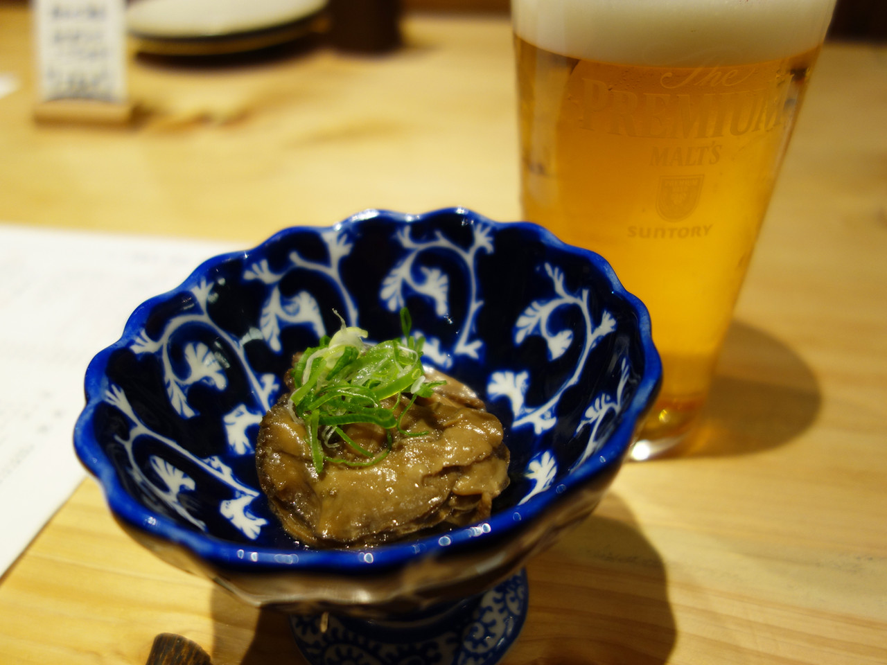 お通しはふっくら仕上げの牡蠣の佃煮です。