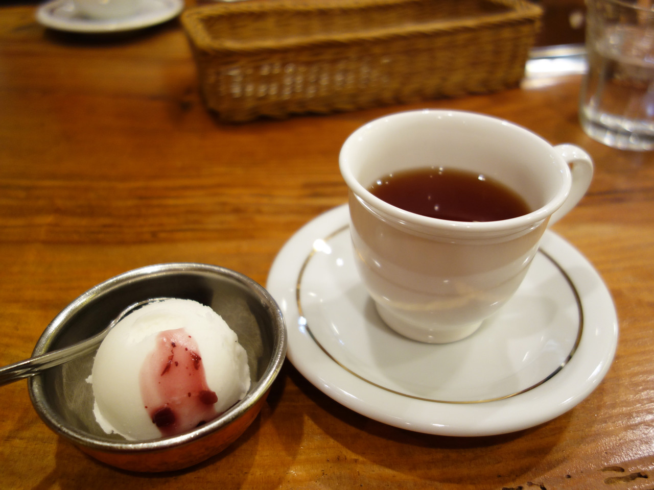 セットのセイロンティーとヨーグルトアイス(ブルーベリーソース)も以前と変わってません。