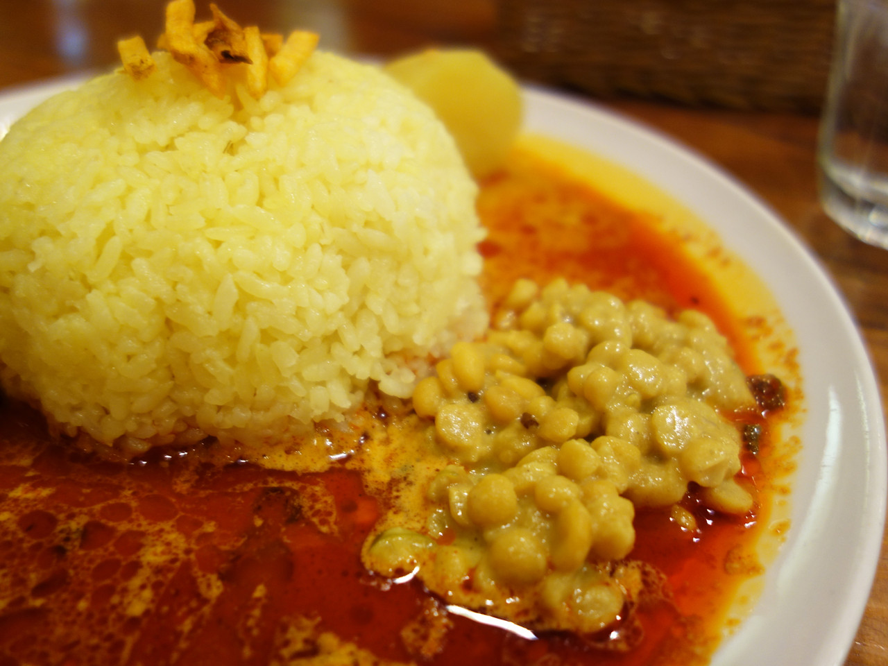 おっぱい盛りのスパイスライスの上にはカラムーチョみたいなカリカリがのってます。
