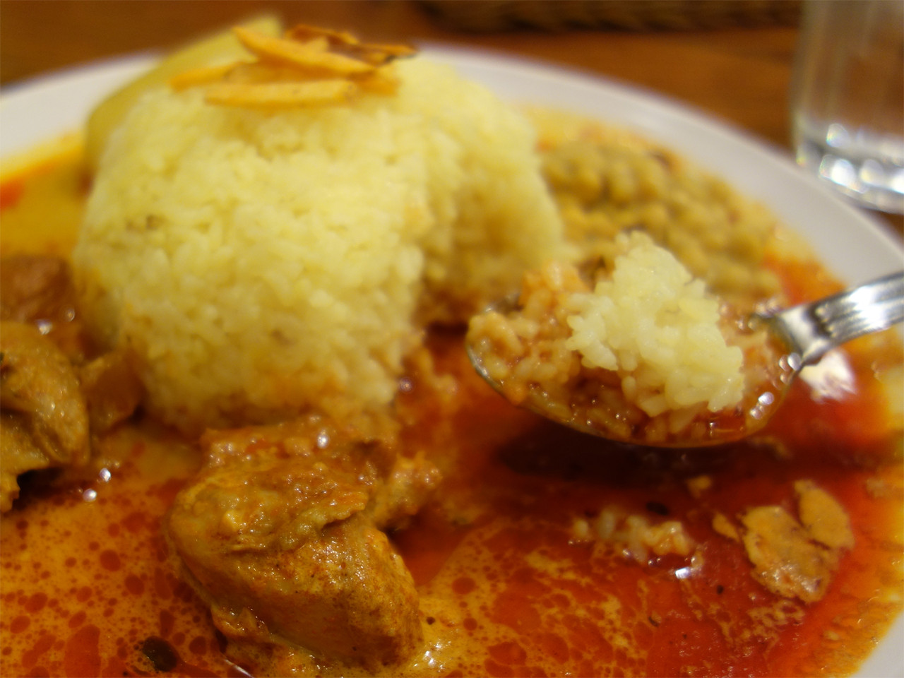 カレーはココナッツミルクが効いて、サラサラしています。