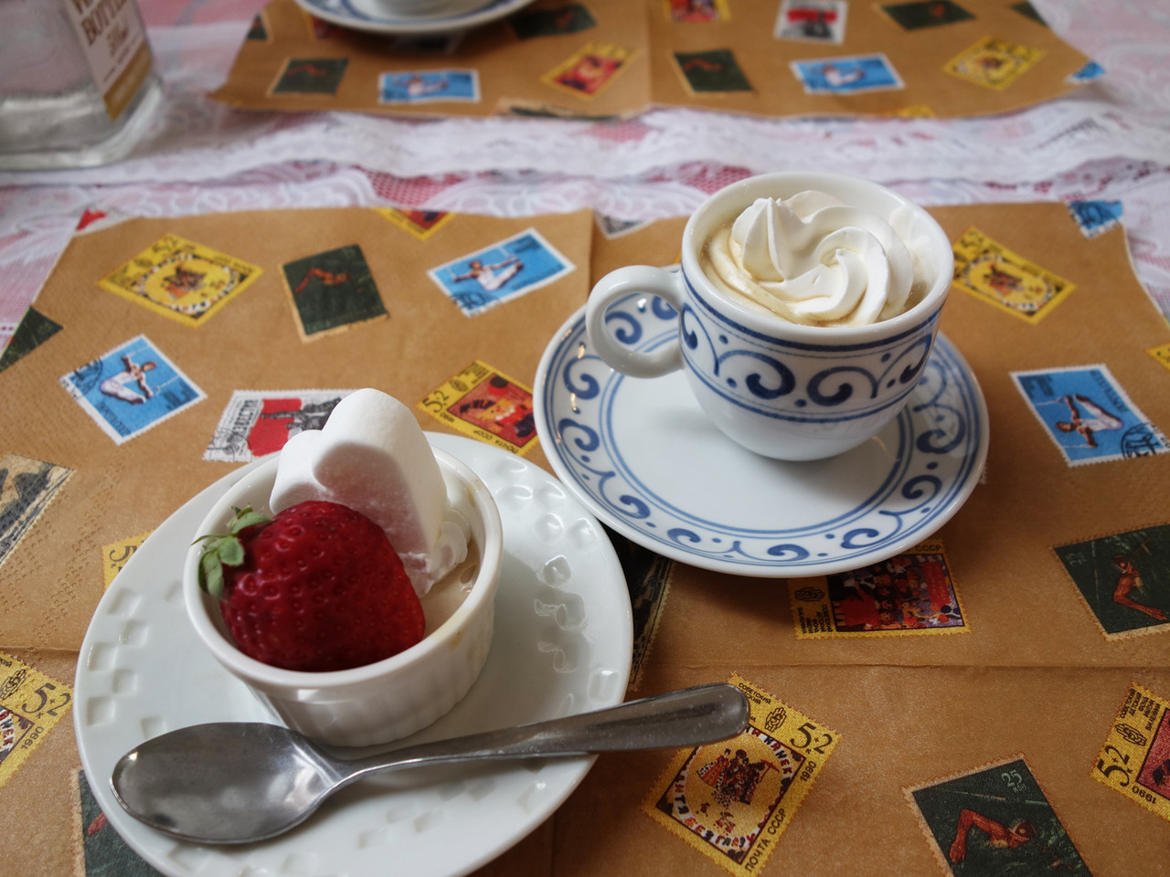食後は、生クリームたっぷりのコーヒーと可愛いデザートを頂きました。