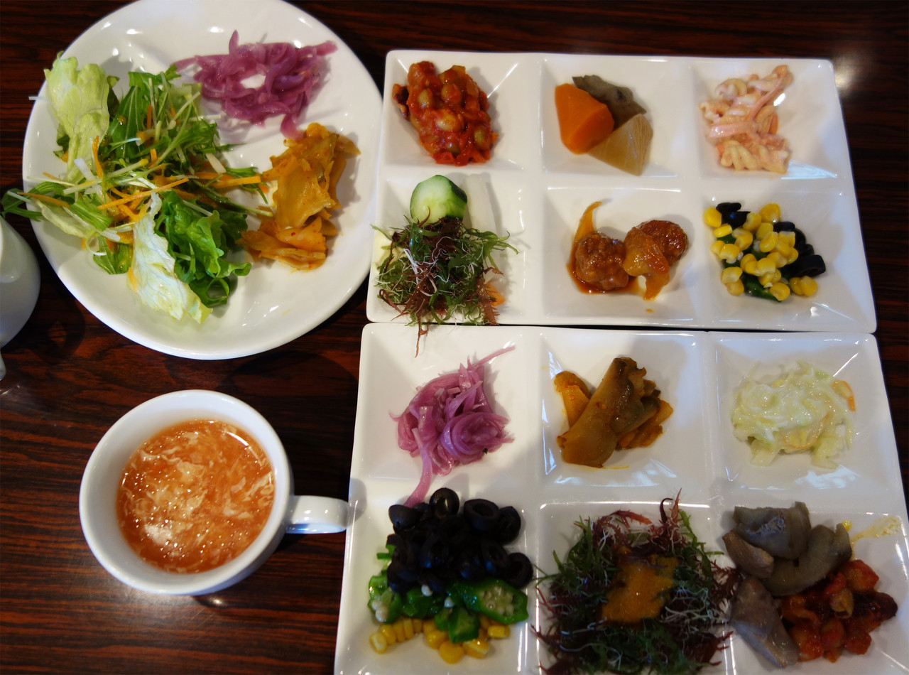 メインの麺や料理に加えて、前菜バー・スープバー・サラダバー・ドリンクバーが付いています。