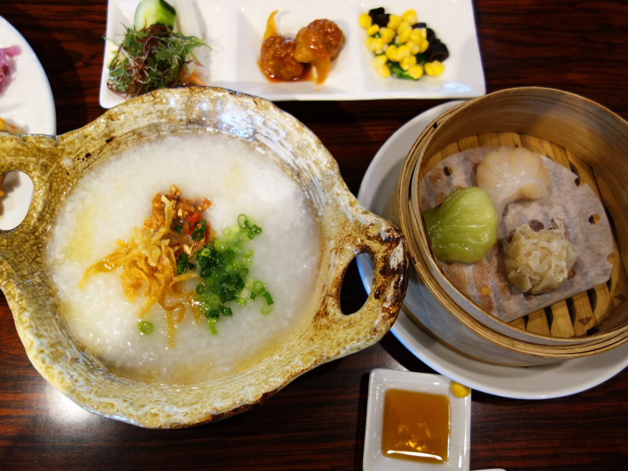 蒸篭で供される点心3個付きです。