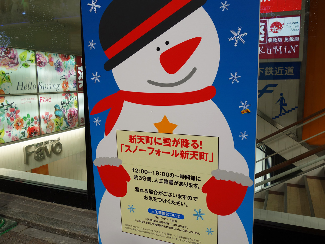 と思ったら、今の時期は人工降雪がちょっぴり降る仕掛けになっているみたいです。